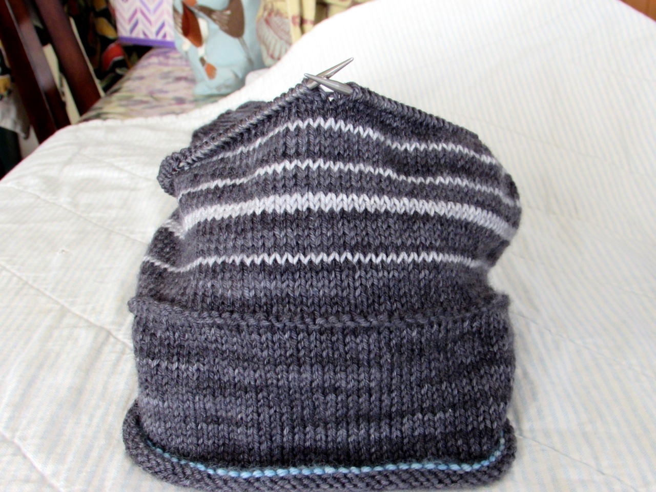 Earlier in the week I had a hat under construction, and I was knitting stripes. Before I give you an update, let me back up a bit.